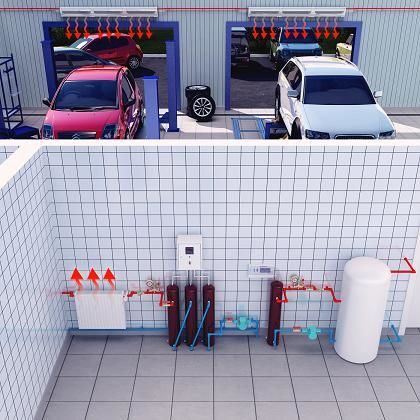 Для энергосберегающего отопления электричеством коттеджей, складских комплексов, производственных помещений площадью от 300 квадратных метров, работает от сети напряжением 380 В.